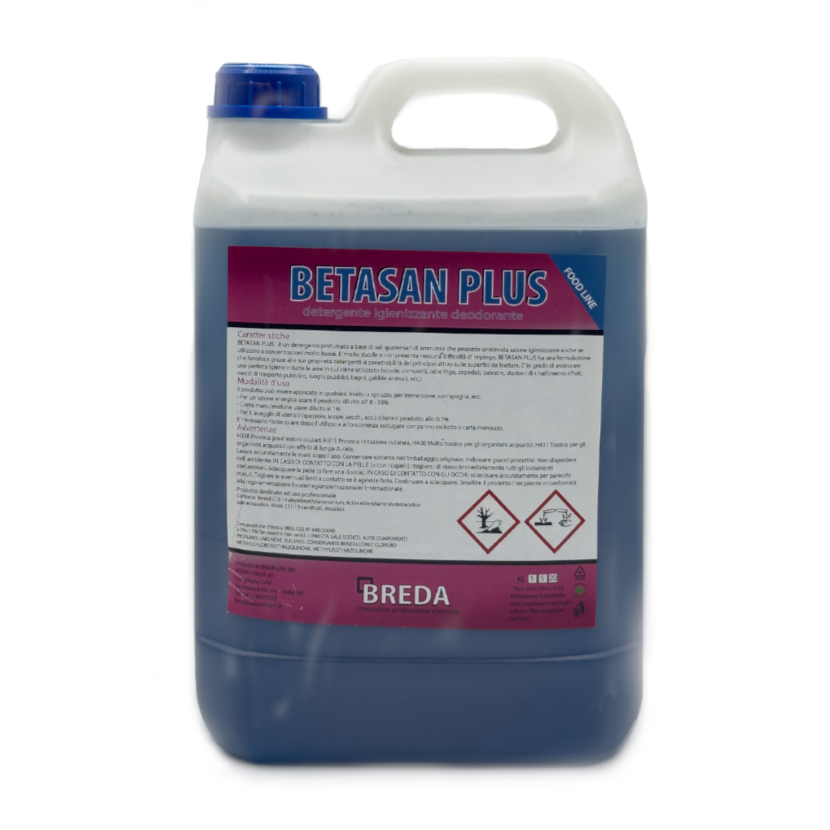 A differenza dei comuni detergenti che si limitano a profumare, Betasan Plus garantisce un’azione igienizzante profonda grazie ai **Sali Quaternari di Ammonio**, principi attivi utilizzati negli ospedali per la loro efficacia. La sua formula a pH neutro lo rende sicuro su qualsiasi superficie (anche pavimenti incerati o delicati), mentre la sua certificazione per l’industria alimentare lo rende indispensabile nelle cucine professionali.